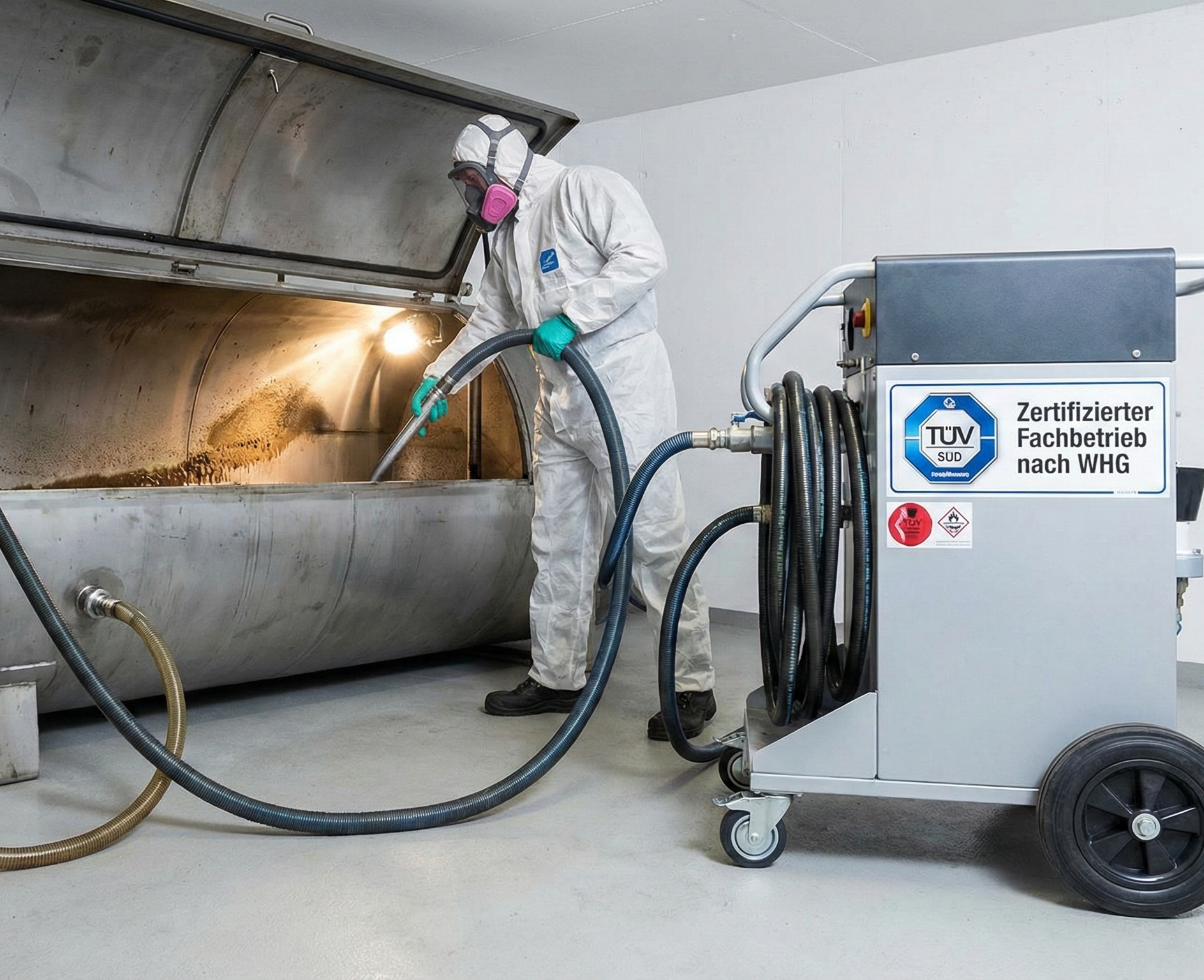 - Qualifikation: Fachbetrieb für Innenreinigung und Stilllegung von Anlagen zum Umgang mit wassergefährdenden Stoffen.